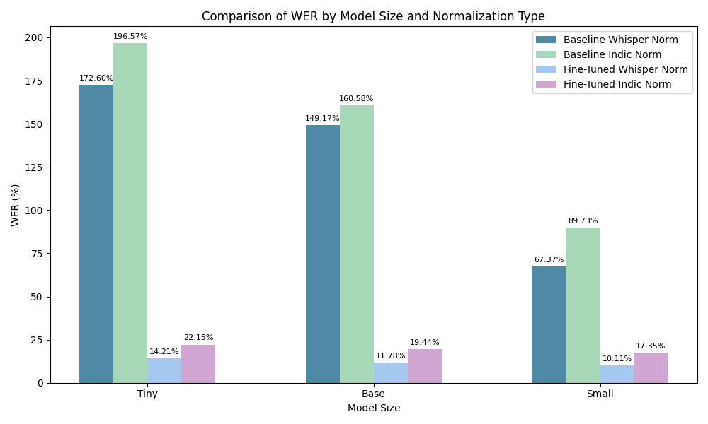 Instead of Whisper's default normalization, we employed Indic Normalization from the IndicNLP Library, which retains diacritics and complex characters, producing more linguistically accurate transcriptions: